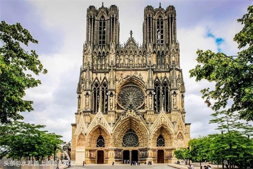 法国兰斯大教堂修建于13世纪,曾是法国历代国王(从亨利一世到查理十世)的加冕之地,在法国历史上的地位举足轻重。大教堂是哥特式建筑的代表作之一,特别是正面的四尊立像,更是哥特式建筑鼎盛时期的杰作。每当夕阳西下时,整座教堂便沐浴在金黄色的光辉之中。遍布教堂外墙的雕像及花纹非常美丽动人。教堂被列入《世界遗产名录》。