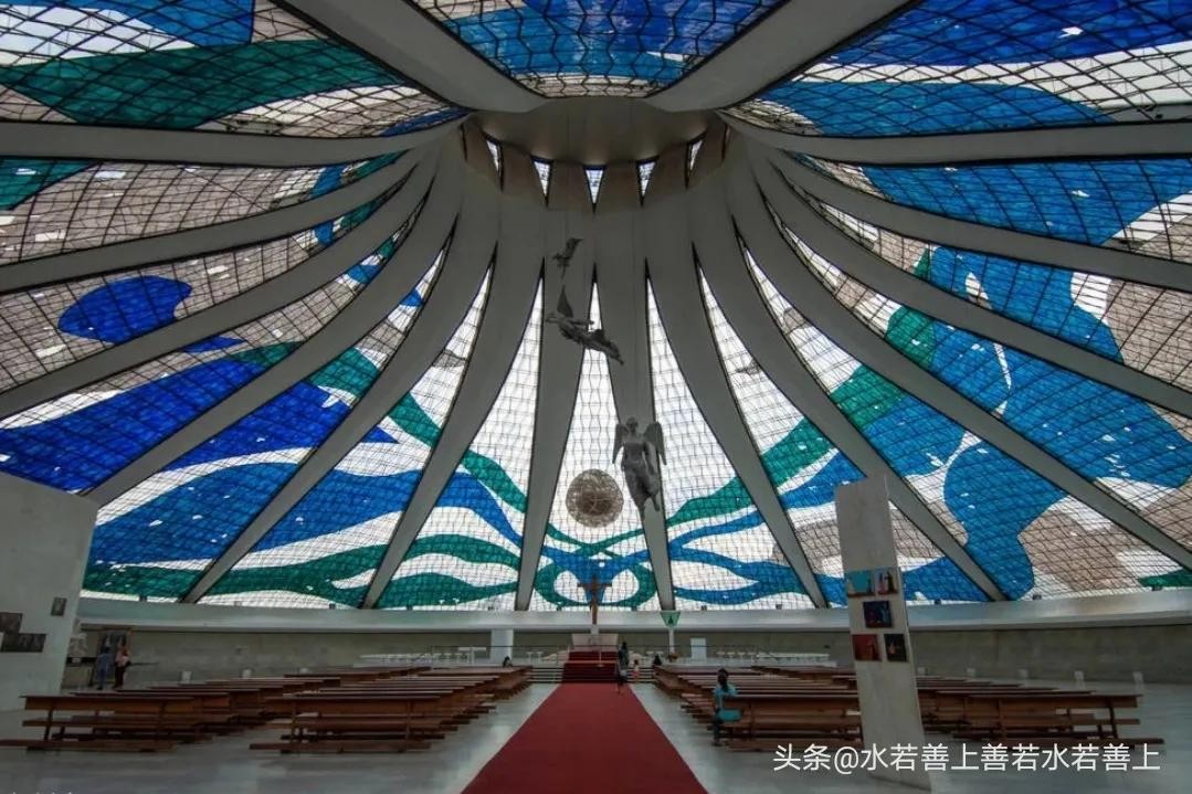 巴西首都的巴西利亚大教堂于1970建成,是一座超现代化的建筑佳作,被称为巴西的象征。大教堂造型奇特,既像印第安人的茅屋,又似罗马教皇的圆形帽。整个教堂大厅建在地下,露出地面部分只是屋顶,弧形的柱子是屋脊。教堂内空间宽敞、光线明亮,给人神秘而又悦目的感觉,充满着现代气息。大教堂见证了巴西利亚这座最年轻的世界人类文化遗产城市的辉煌。