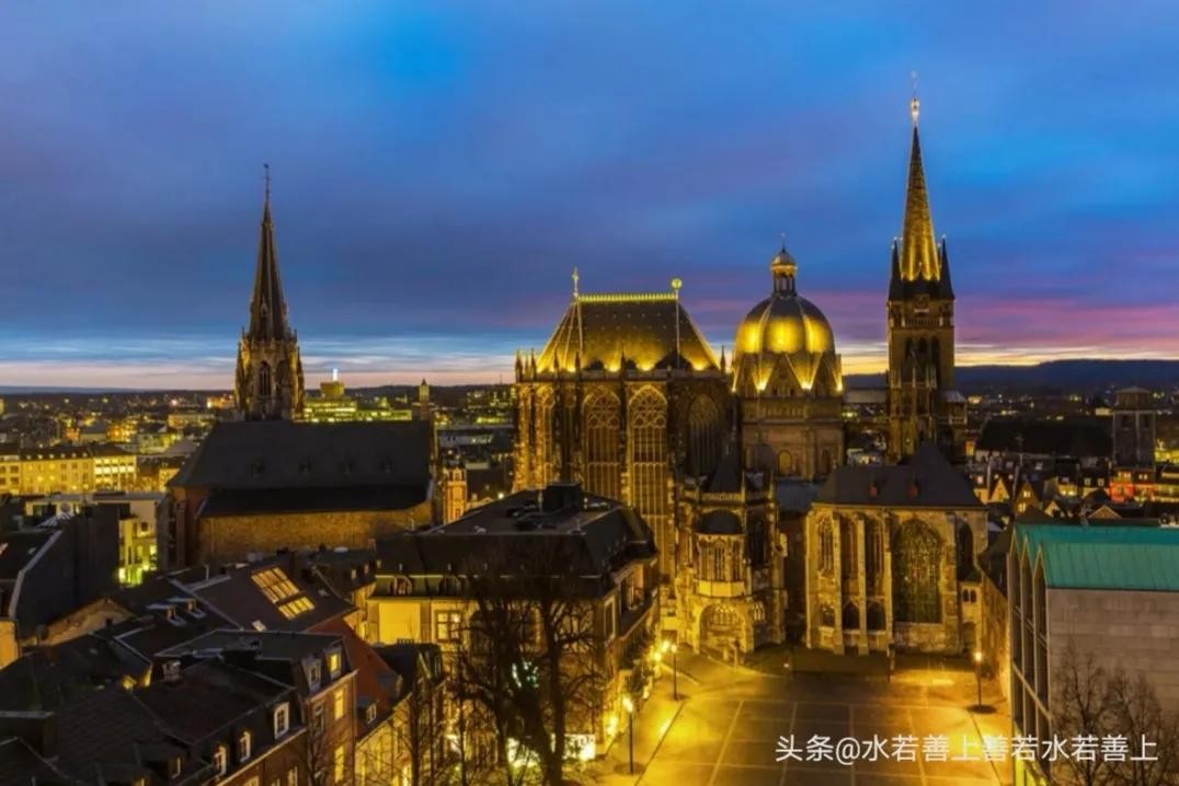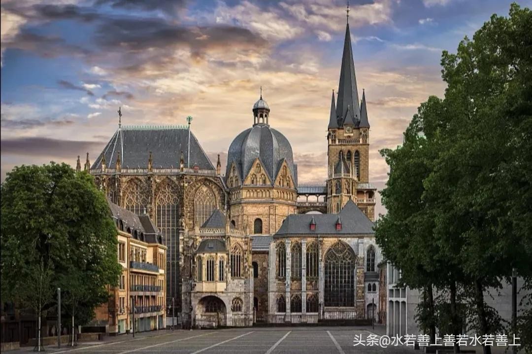 德国亚琛大教堂建于786~805年,是欧洲最伟大的建筑之一。大教堂整体极具宗教文化色彩,是加洛林朝代文艺复兴的代表性建筑,是宗教建筑的一个经典范例,无论是在艺术史还是建筑史上都具有非凡意义。教堂还藏有一批非常珍贵的文物和宗教艺术品,被认为是北部欧洲最重要的教会艺术宝藏。大教堂是德意志帝国皇帝的加冕教堂(长达600年),还是德国的第一处世界文化遗产。