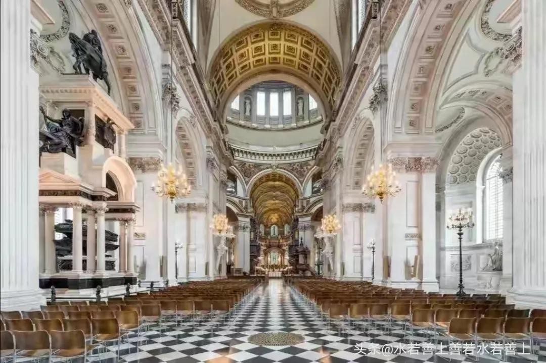英国伦敦圣保罗大教堂始建于604年,历经多次毁损、重建,最终在17世纪末落成,它是伦敦的宗教中心。教堂建筑为华丽的巴洛克风格,覆有巨大穹顶,是英国第一大教堂,世界第二大圆顶教堂,被誉为古典主义建筑的纪念碑。教堂整体建筑设计优雅,内部安详、静谧。无论从哪个角度欣赏,都会被它壮观的大圆顶震慑,空间感可窥一斑。塔顶是眺望伦敦市区的绝佳地点。