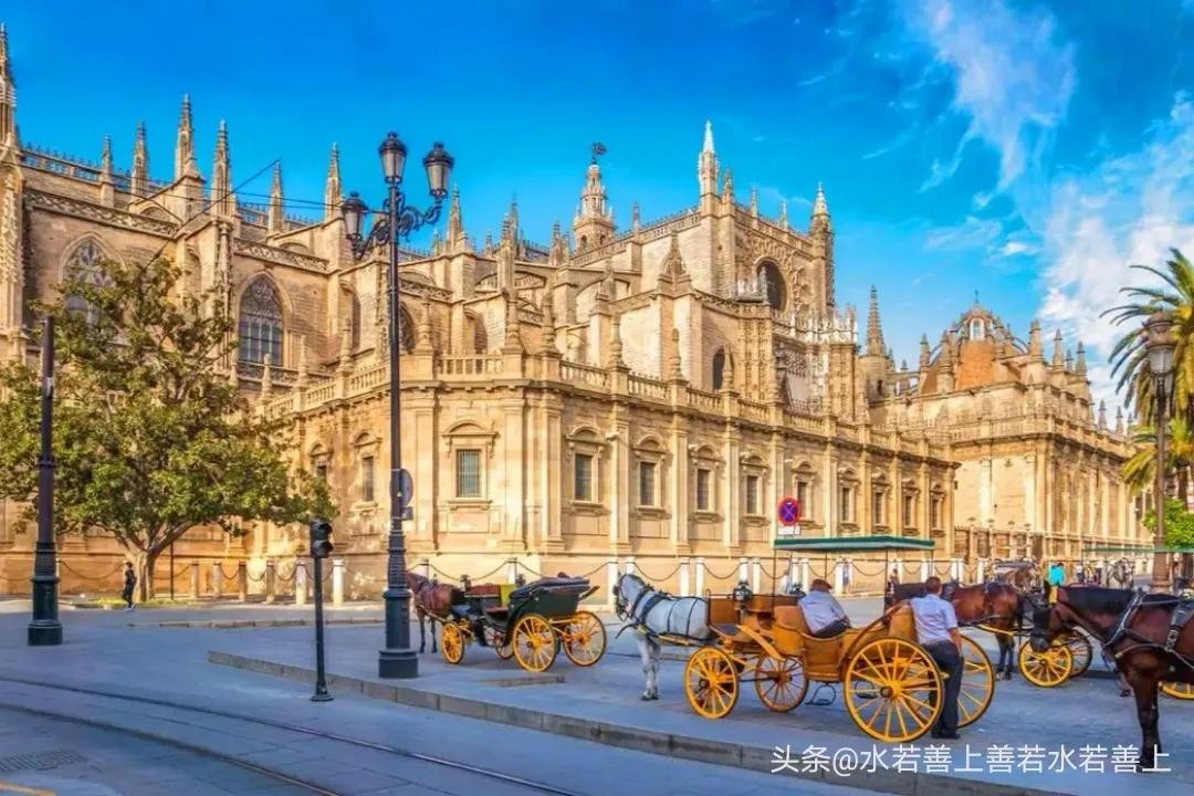 西班牙塞维利亚大教堂于15世纪初在原伊斯兰教寺院的旧址上修建,1506年落成,它曾是基督教世界里最大的宗教建筑,整个建筑融合了西班牙哥特艺术和阿拉伯建筑艺术的风格,是基督教与伊斯兰教双重风格的宗教艺术的产物。整个教堂外墙装饰着精美的石雕。大教堂博物馆藏有众多宗教、绘画艺术珍宝。教堂被列入《世界文化遗产名录》。