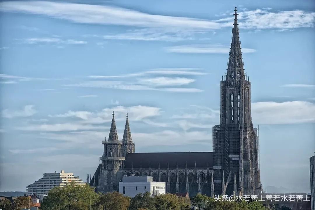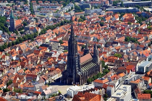 德国乌尔姆敏斯特大教堂是典型的哥特式建筑,始建于1377年,凝结了数代工匠的血汗和智慧,直到1890年才最终竣工。教堂主塔高耸入云,十分壮观,是世界上最高的教堂钟楼,被载入吉尼斯世界纪录(高161.53米)。站在塔顶平台可以俯视爱因斯坦诞生地和多瑙河的全貌,当地人称教堂是上帝赐给他们的荣誉。