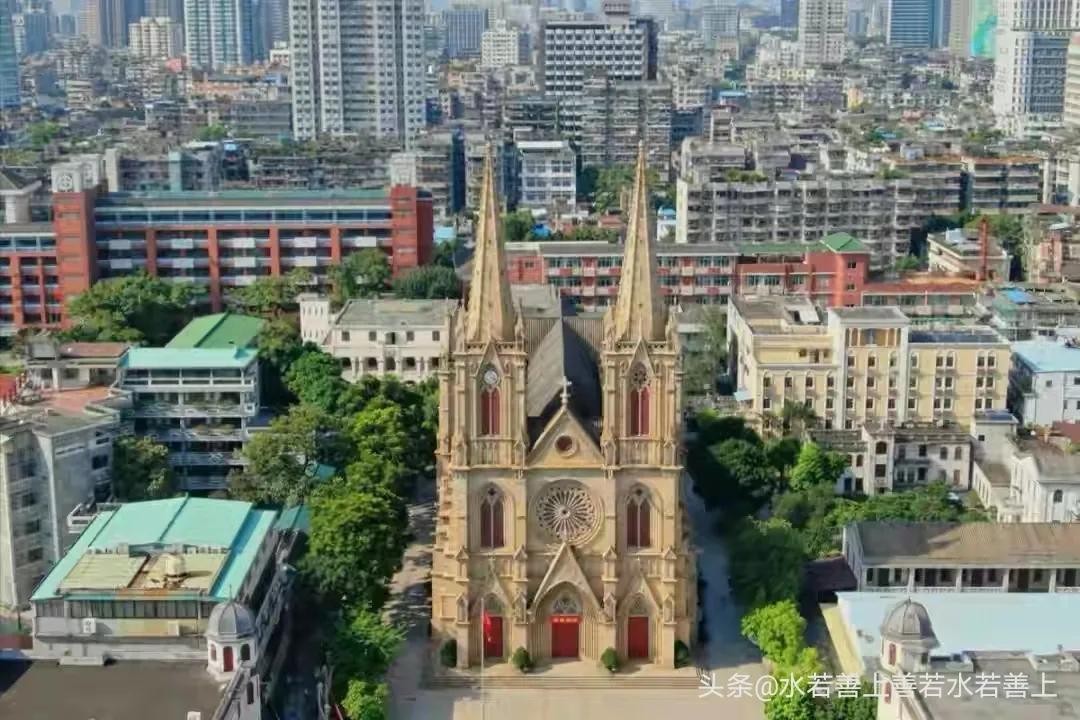 广州石室圣心大教堂建于1863~1888年,是国内现存最宏伟的双尖塔哥特式建筑之一,还是全球四座全石结构哥特式教堂建筑之一,可与举世闻名的巴黎圣母院相媲美。教堂墙壁和柱子都是用花岗岩石砌造,淡黄色的花岗岩透着威严庄重与历史的沧桑。教堂现为全国重点文物保护单位。