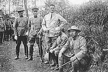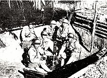 日军使用十一年式曲射歩兵炮由马赫坡高地之堑壕向马赫坡大岩窟炮击