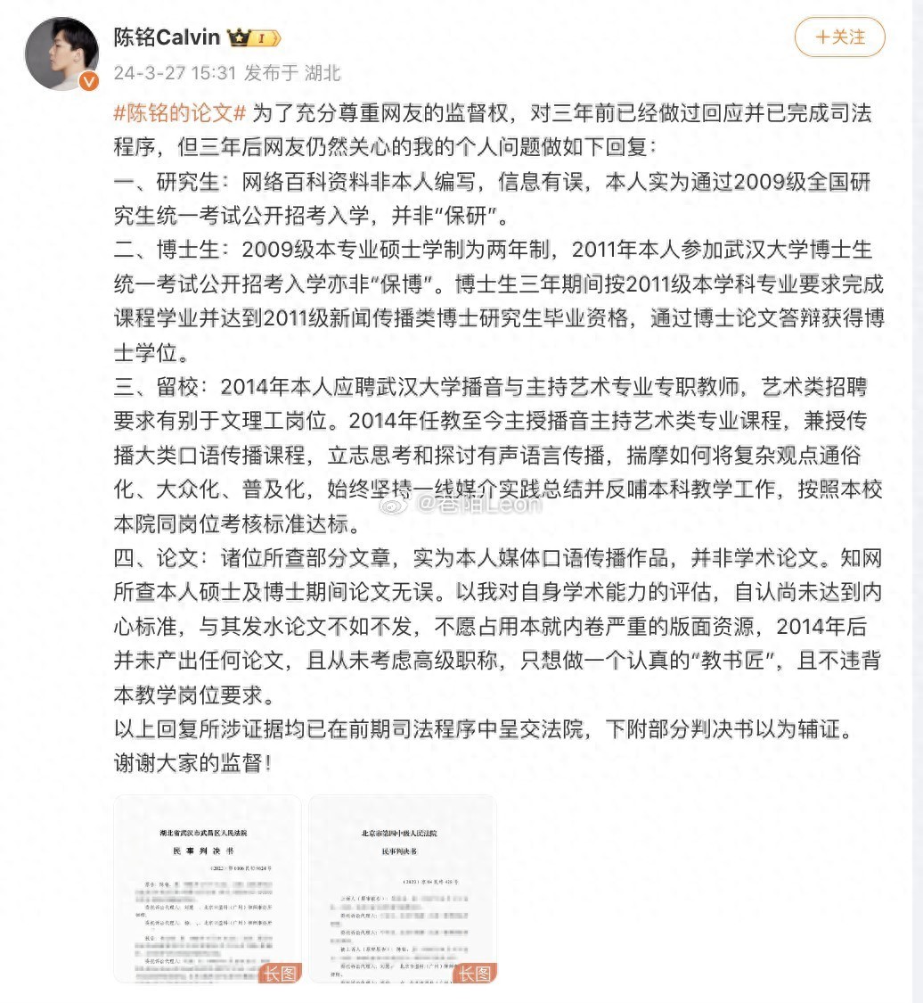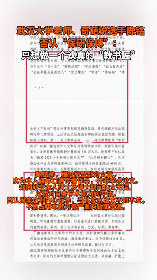 首先,让我们来聊聊陈铭的研究生之路。网络浩如烟海,信息错综复杂,但陈铭坚称自己的研究生之路并非平坦之路上的“保研”直通车,而是通过公开的全国研究生统一考试,一步一个脚印走入武汉大学的大门。
