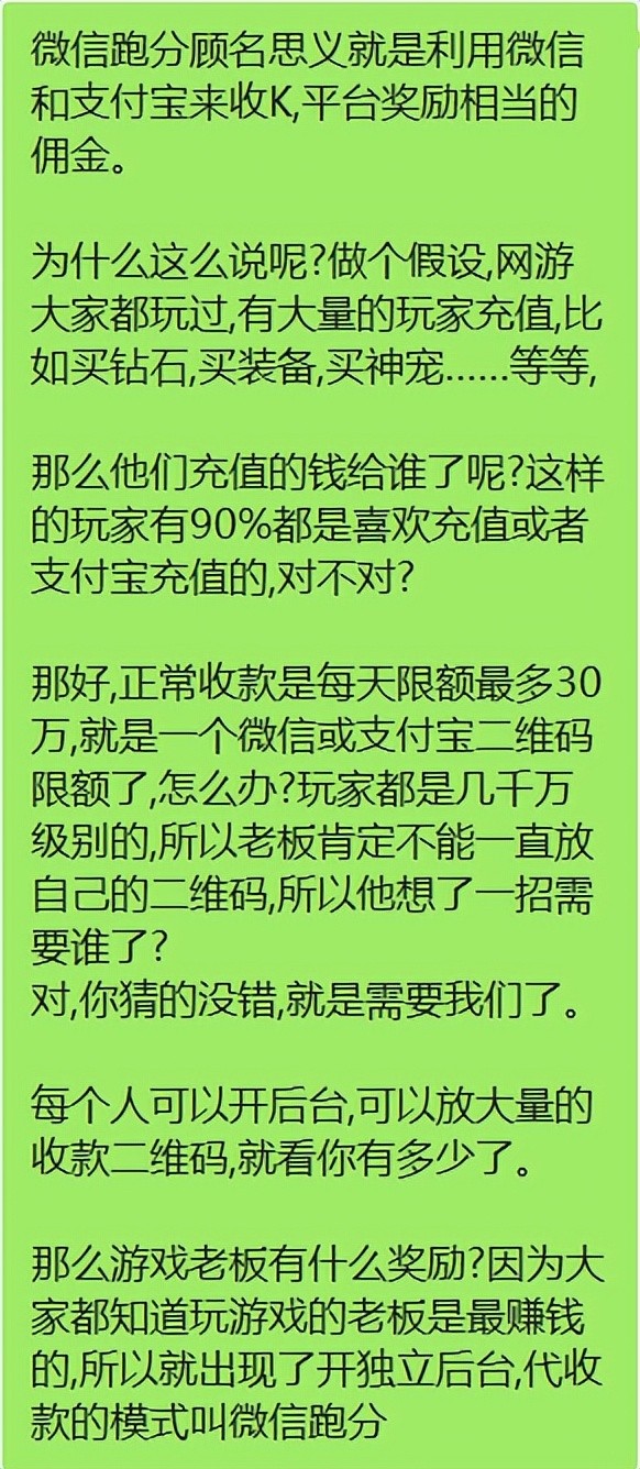 跑分就是就是利用自己的微信、支付宝收款二维码最新的还有银行卡,替陌生人代收款,从中赚取相应的佣金。加入平台后,还需要充值相应的押金,押金的多少决定着抢单佣金的级别。最低充值缴纳200-500不等押金,即可以参与抢单,最高按照2%获得佣金。