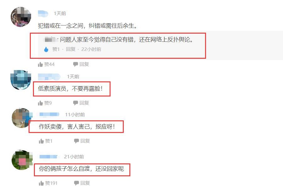 不过此次发文却遭到了一些网友们的怒怼,有人直接回复道:“你的俩孩子怎么自渡,还没回家呢!”也有的讽刺道:“作妖卖傻,害人害己,报应呀!”