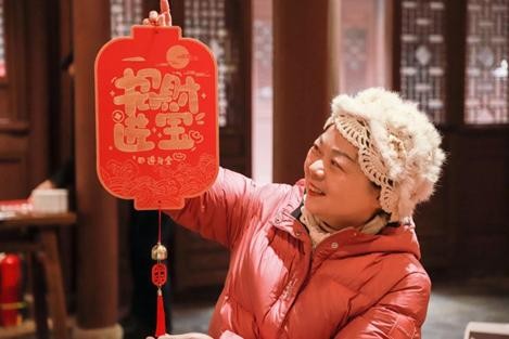 “用棕刷蘸墨要轻,拓印时保持匀速按压,这样做出来的风铃会更好看。”在工作人员的指导下,居民们共同体验非遗技艺,并将这些承载着美好愿望的风铃悬挂于祈福架上,祈求蛇年平安吉祥、幸福美满。
