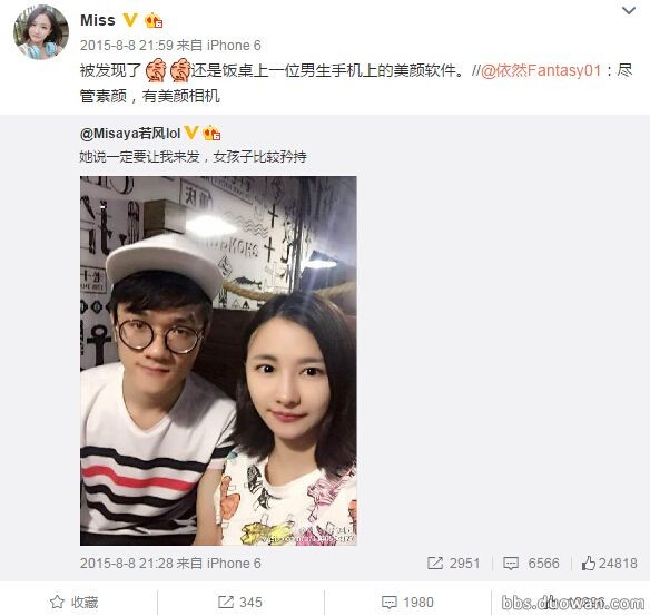 吃饭也要找机会和女神合影,发个微博试下女神态度。