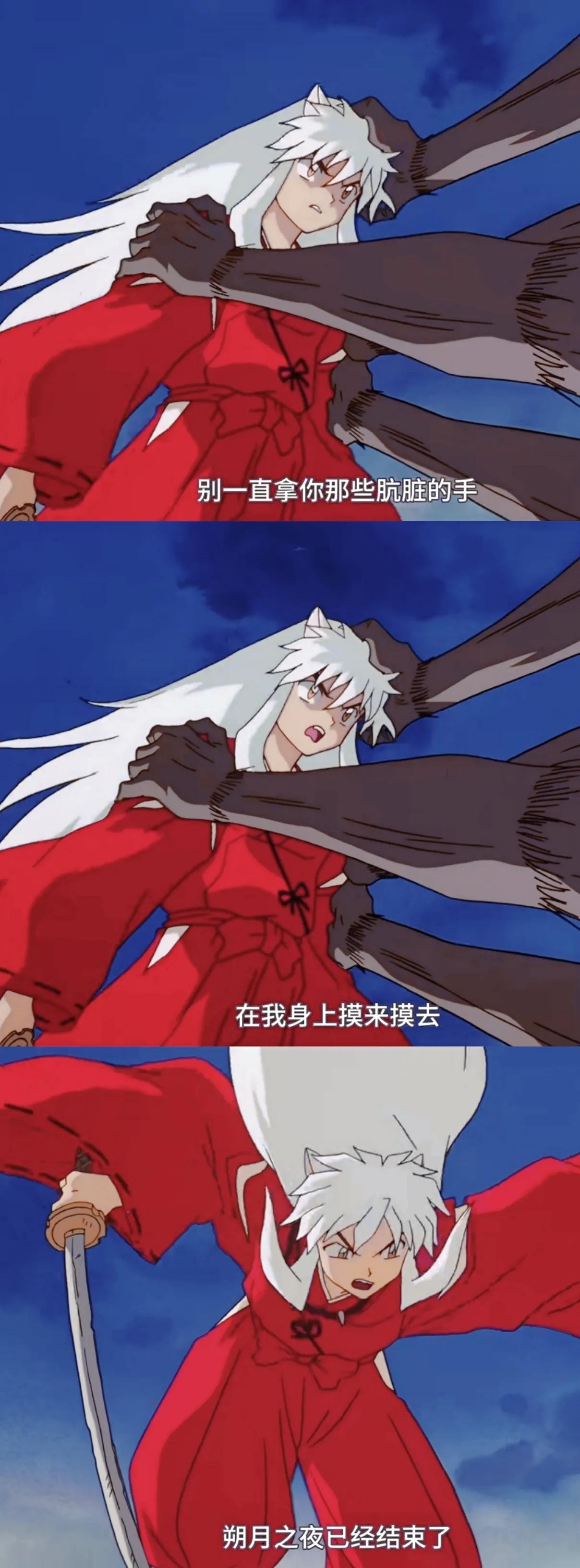 在弱肉强食的世道里,暴露弱点,简直是致命的,犬夜叉那充满妖力时的总攻架势,在新月时分不得不收敛。