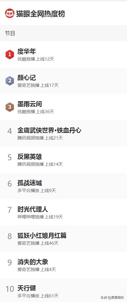 附:猫眼全网网剧热度榜单