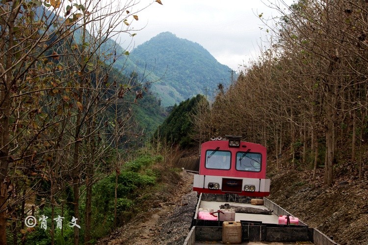在山谷和山区,米轨铁路就像一条蜿蜒的曲线。在山区平原上,米轨铁路直通田野。行道树随风摇曳,信号灯高耸入云,火车的轰鸣声不时从山谷中传来。
