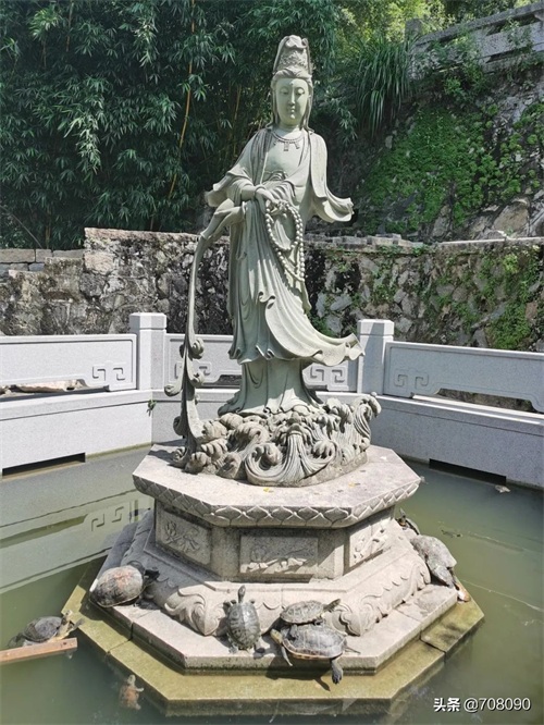 观音阁外面的观音雕像,乌龟们悠闲地晒着太阳。