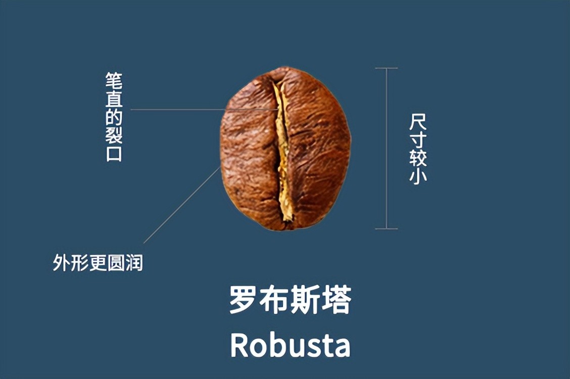 外观上,罗布斯塔生豆呈淡绿色,而阿拉比卡生豆呈深绿色,体积稍大;风味方面,阿拉比卡味道更酸、更温和、有果酸味,罗布斯塔有强烈的苦味、湿土和木头的泥土香气;咖啡因含量是阿拉比卡咖啡的两倍。