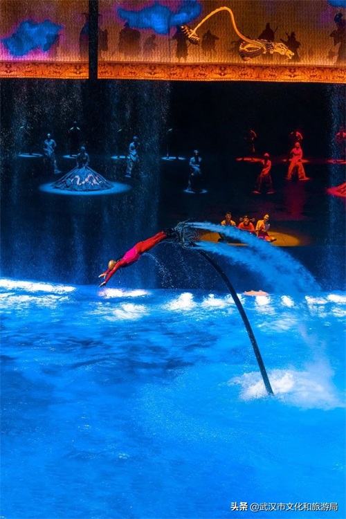 糅合舞台剧、跳水、杂技等多种演出形式于一体,“汉秀”运用水幕及高科技的舞台机械设备,配合演员极具张力的演出,让观众的目光紧紧跟随。