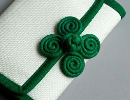 纽扣结是双钱结延伸出来的结体,形如纽扣,因此得名。其不易松散,⼗分常⽤,且实⽤性⾼,古时常⽤做⾐服的纽扣及与其他佩饰搭配。现今我们常把此结作为编制绳结的结尾,或当成盘扣的组成之⼀。