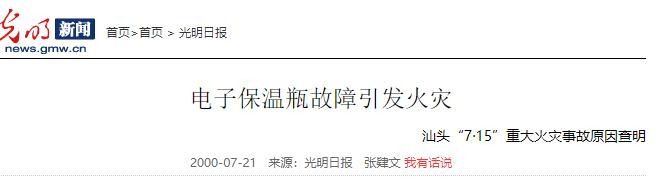 参考资料:电子保温瓶故障引发火灾.光明网 [引用日期2024-07-10]