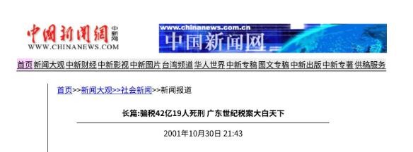 参考资料:长篇:骗税42亿19人死刑 广东世纪税案大白天下.中国新闻网 [引用日期2024-02-08]
