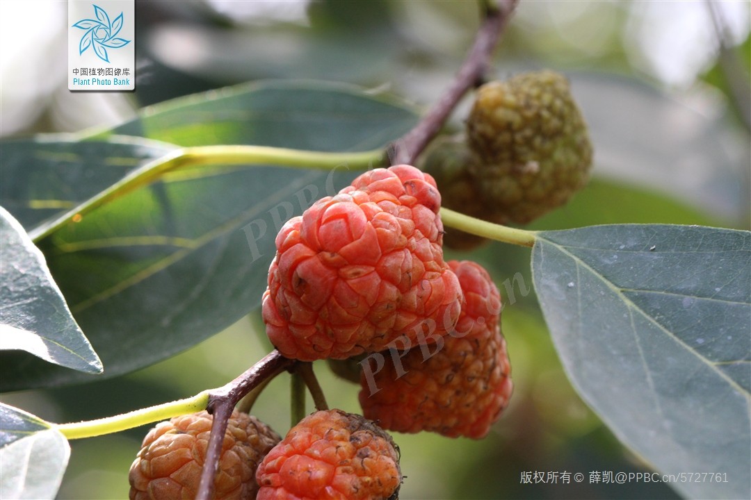 聚花果近球形,直径约2.5厘米,肉质,成熟时桔红色。花期5-6月,果期6-7月。