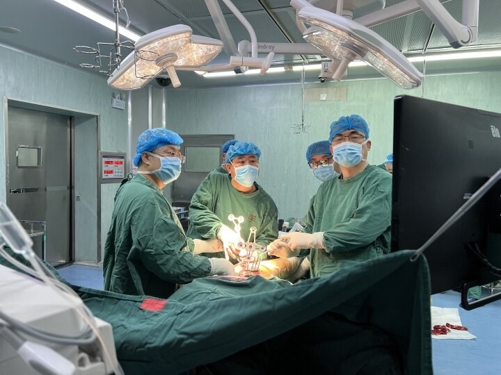 历经1小时20分钟的努力,手术顺利完成。患者被推出手术室时,生命体征平稳。付伟教授介绍:“此次手术的成功,是多学科协作的成果。手术机器人的应用,不仅提升了手术的精准度和安全性,也标志着我们在智慧医院建设和高端医疗技术应用方面迈出了重要一步。”