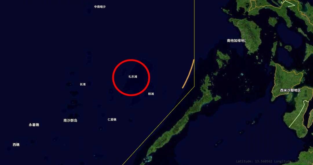 从卫星地图上看去,礼乐滩与中国大陆直线距离超过1000公里,但是与菲律宾西部巴拉望岛距离约148公里,由于距离太近,菲律宾船只时常造访礼乐滩,包括军舰、渔船和海警船。