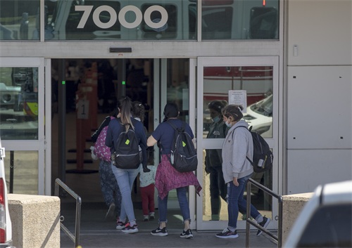 2022年9月30日,移民进入美国得克萨斯州圣安东尼奥的移民资源中心。新华社发(尼克·瓦格纳摄)