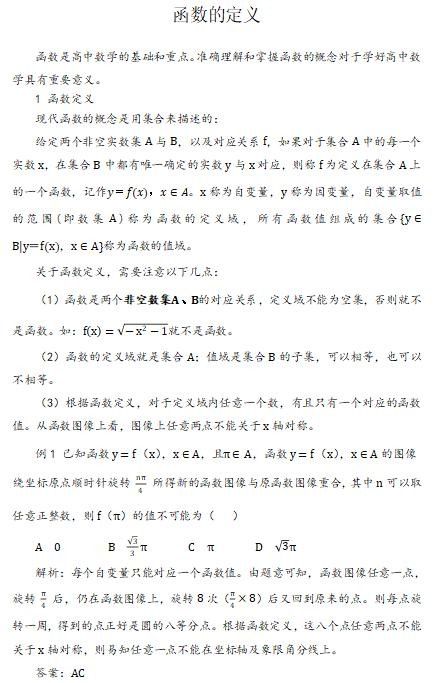 函数是高中数学的基础和重点。准确理解和掌握函数的概念对于学好高中数学具有重要意义。