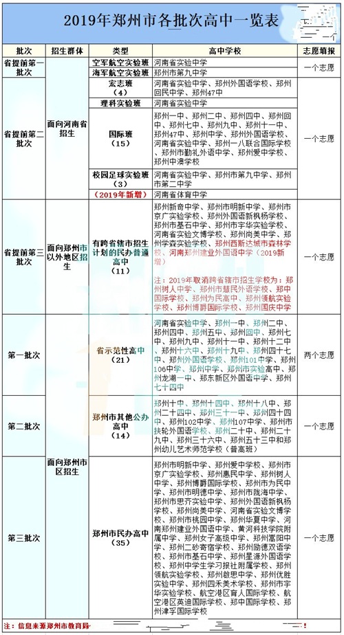 说明:在中考志愿填报时,省提前第一批、第二批学校面向全省招生,即有河南省学籍即可填报;省提前第三批学校面向河南省内、郑州市以外学生报考,郑州市考生可报考郑州市区第三批次民办高中。也就是说,在定目标时,家长们需要选择在招生范围内的学校。