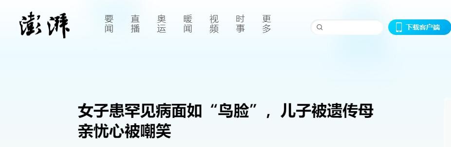女子患罕见病面如“鸟脸”,儿子被遗传母亲忧心被嘲笑_澎湃号·湃客_澎湃新闻-The Paper