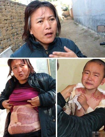 河北省行唐县,一个孩子患有皮肤病,她的妈妈割光了整个腹部、两肋、臀部皮肤为孩子植皮,共2000多平方厘米。