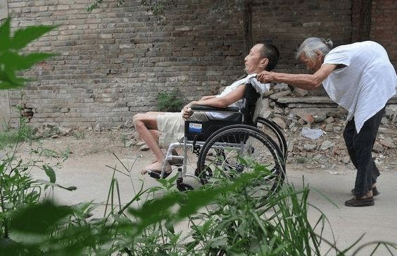 儿子患病多年,行动不便只能依靠轮椅,老母亲就这样四十几年如一日地推着儿子前行。