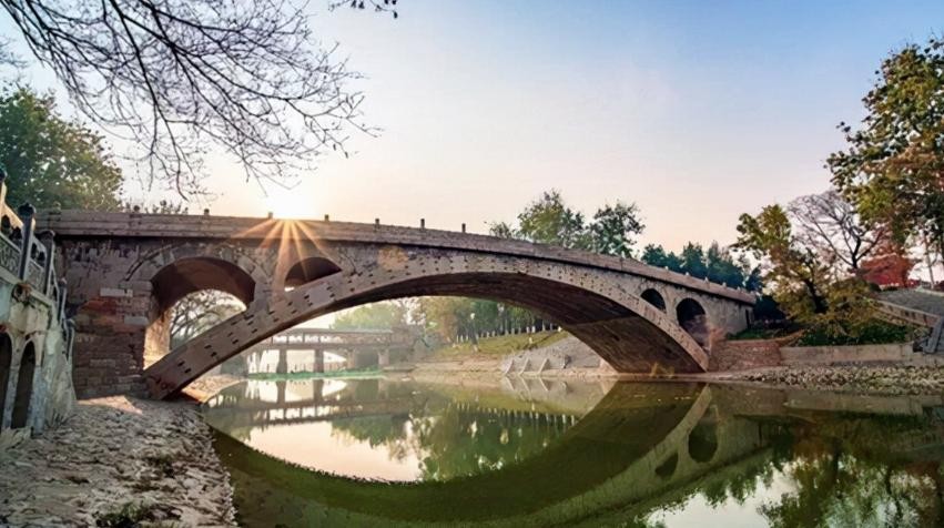 它是目前世界上最古老、跨度最大、保存最完整的单孔坦弧敞肩石棋桥。这座桥横跨洨河,形态宏伟壮丽,给人一种飞虹横跨的视觉冲击。自古以来,赵州桥就被誉为古代桥梁建筑的经典之作,也被称为“天下第一桥”,足以证明它在桥梁史中的重要地位。