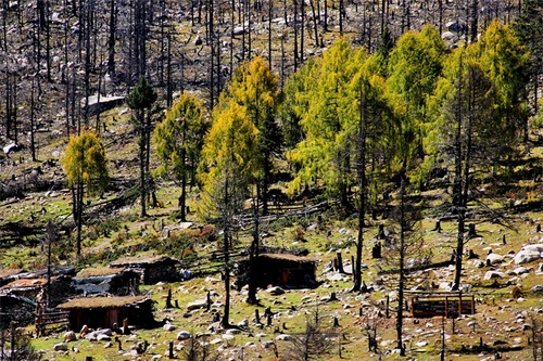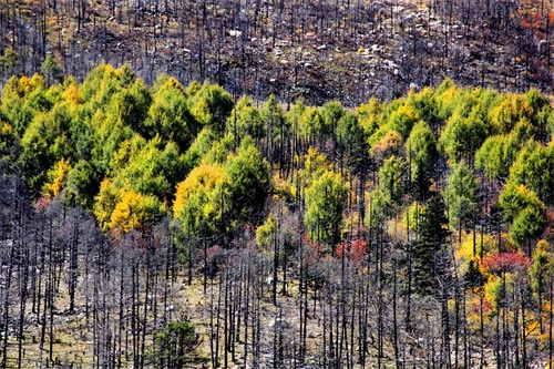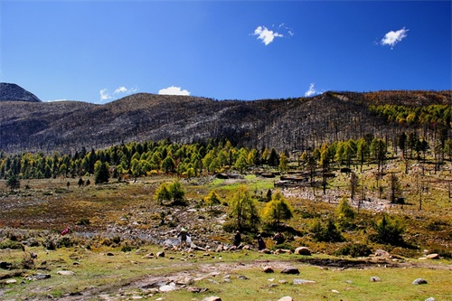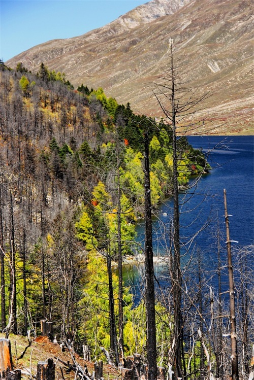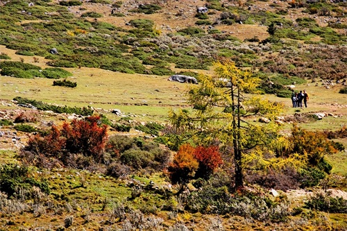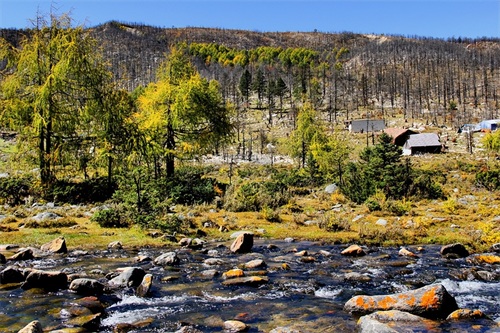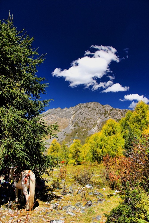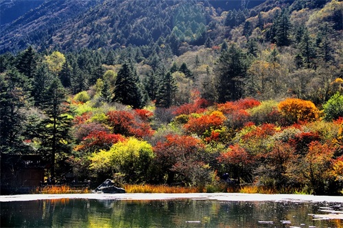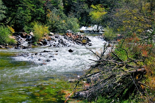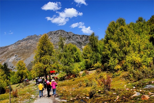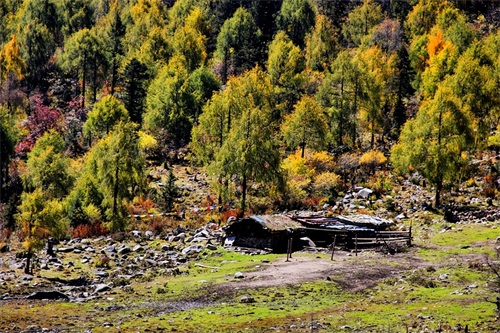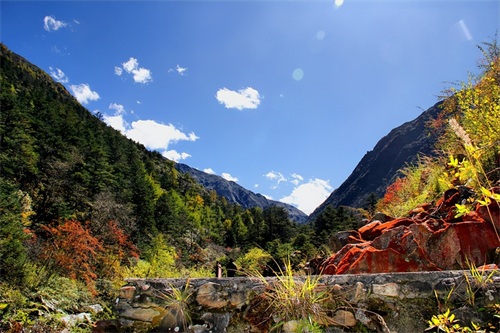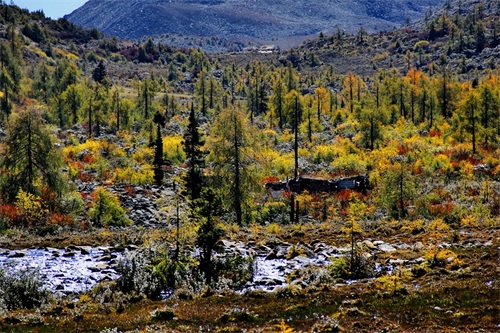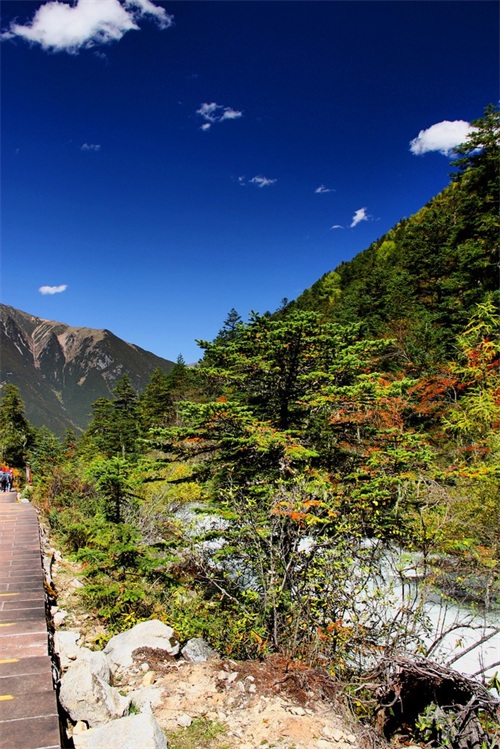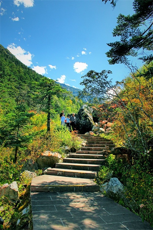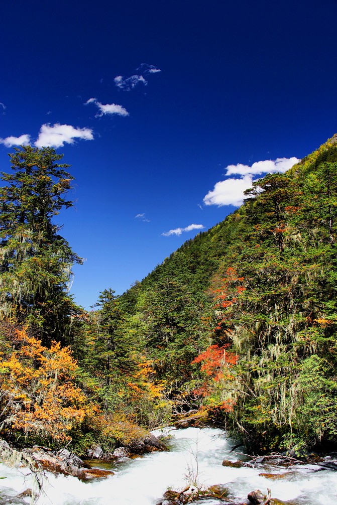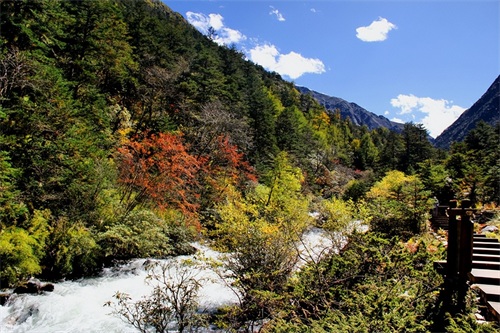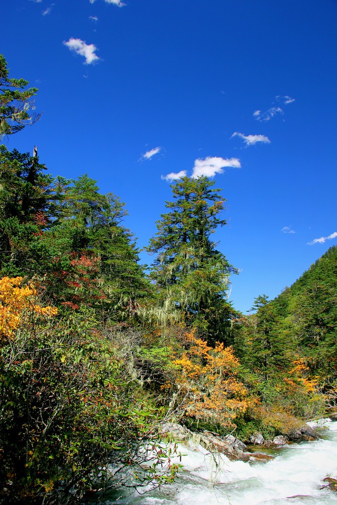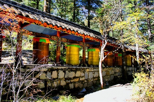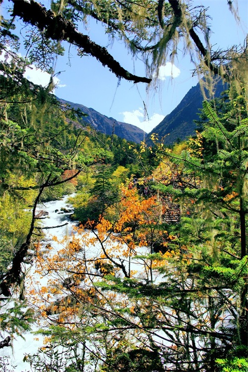 沿俄玛措至七色海途径:转经长廊、红叶观赏区、松萝观赏区、原始森林,可谓真的进入童话的世界,五步一景十步一图,沿途有山川、河流、溪流、瀑布、红石等风景俄罗多姿,将色彩的搭配、动静的结合等发挥至极致……