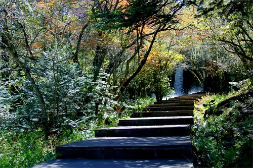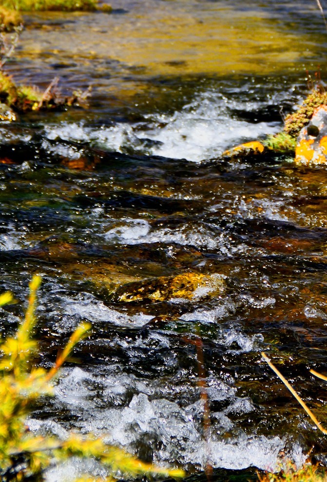 从黄金海岸到白海草原我选择了穿越一片约100米长的森林山路,会有这样的选择主要是被森林中的原始绿色及光影所吸引,在这通过眼睛获得了会呼吸的氧气、葱郁的森林、溪流……水珠的晶莹剔透、苔藓的绿宝石般的闪闪发光,这的秋意很浓,时间也仿佛被溪水所凝固