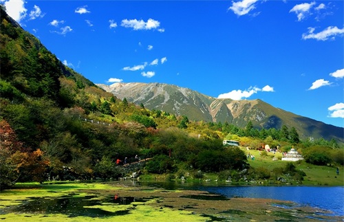 俄玛措,在药池沸泉对面,海拔3500m,这的水碧绿可人,仿佛一副油画。