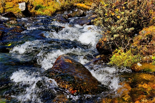 溜溜山:跑马溜溜的山上一朵溜溜的云哟~端端溜溜的照在康定溜溜的城哟~这首《康定情歌》婉转传唱了多年,也不知承载了多少少年的梦。包括自己在看电影《康定情歌》时也曾深深被其自然美景所震撼,被其唯美的故事所感动。这次来到溜溜山它将我带回自然的节奏,已然深秋,到处都是色彩斑斓,无论是这里的山或水,都呈现着自然的原汁原味,都在告诉我们自然是如此的对我们恩赐,若用两个字来形容就是——很美。差点忘记说了在这里的小溪边听水真的很舒服,让人心旷神怡,不由得想起:伯牙善抚琴,子期最辨音;高山情依依,流水叹古今。高山可仰止,流水能赏意;人去琴无声,琴在无人知。