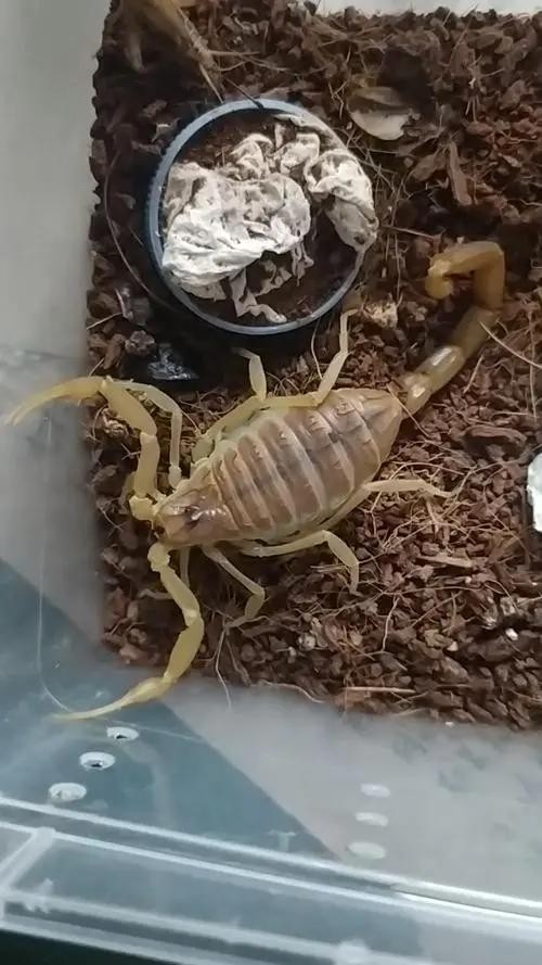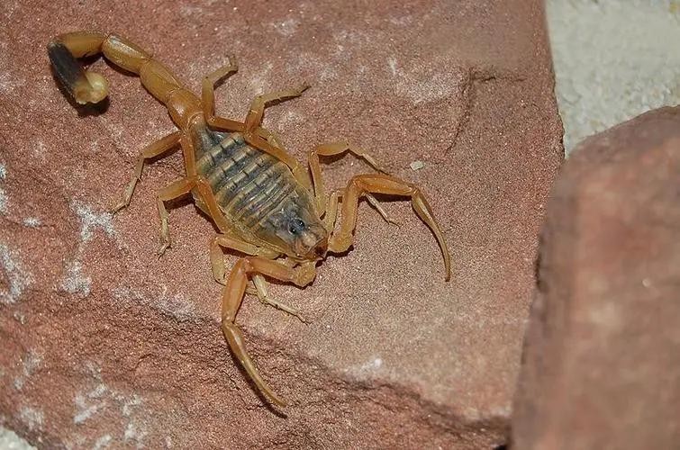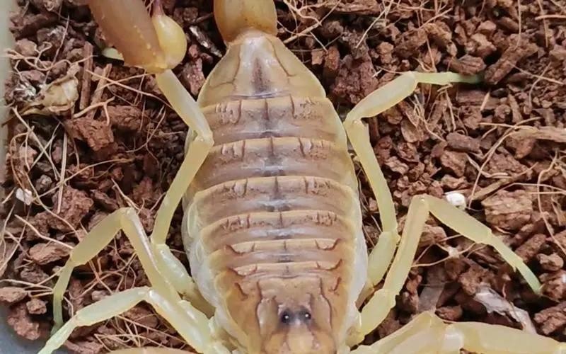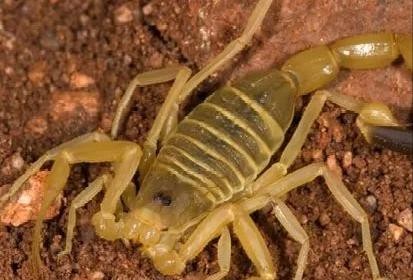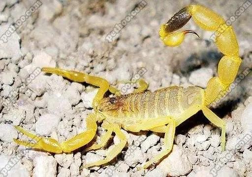 2.形态特征:以色列金蝎具有典型的蝎子外貌,包括两只大大的螯肢、长长的尾巴和分节的身体。它们的体长一般在8至13厘米之间,尾巴末端有一对毒刺。以色列金蝎的黄色体色是它们最为显著的特征之一,这种颜色在沙漠环境中起到了伪装的作用。在不同的地理分布区域,这种黄色可能会呈现一些变异。