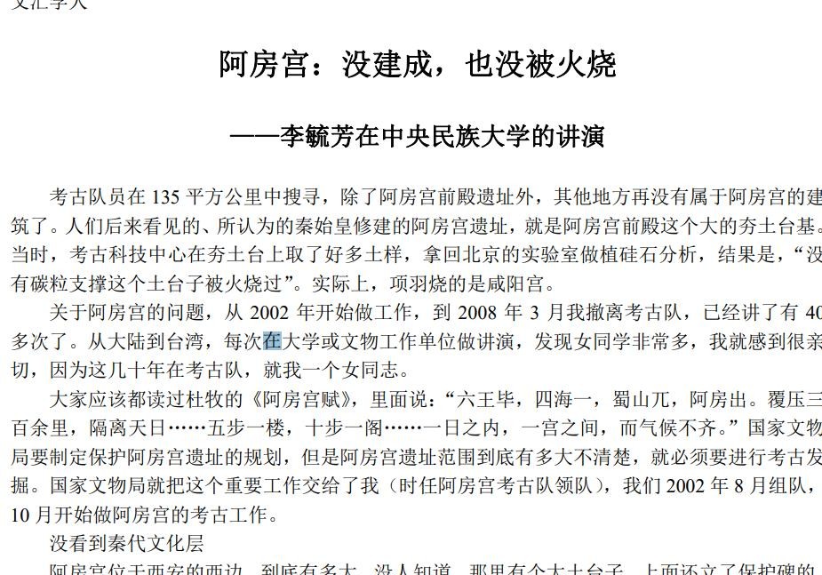 他指出,阿房宫没有完工,也因此才用“阿房”作为命名。