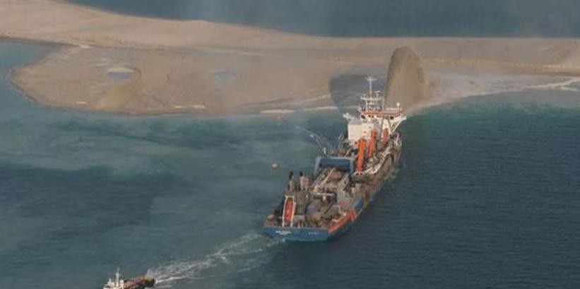 航拍图像中,那些未完工的岛屿如同一块块触目惊心的伤疤,散布在大海之中。