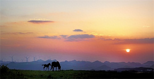 贵阳市花溪区高坡云顶草原日落(花溪区高坡乡供图)