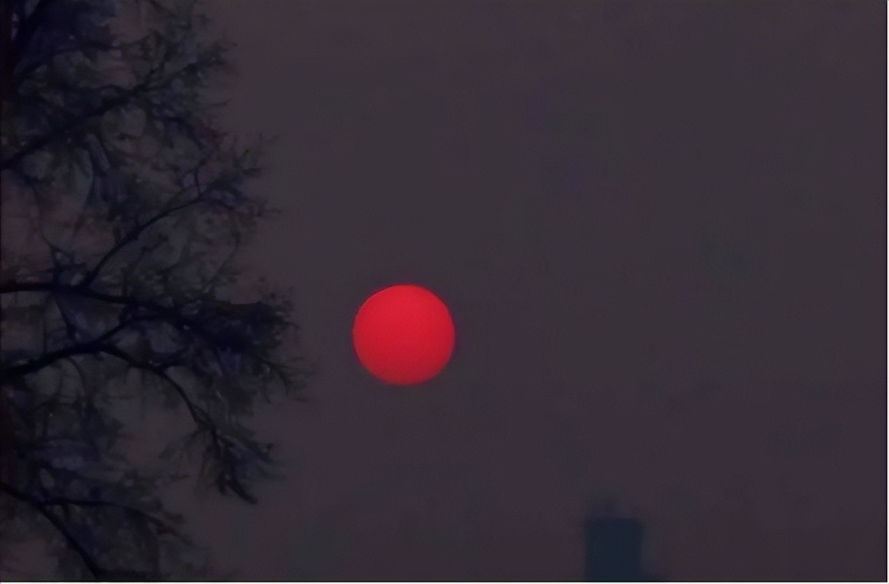 说起来,本身傍晚时分的落日,它就是红色的,这其实与大气中的光学作用有关。在日落时分,太阳光想要穿透大气层,它的路径会变得更长,在这个过程中,很多穿透能力较弱的光线,都直接被散射掉了,而红色、橙色这样的光线,因为不容易散射,所以就会出现在地球傍晚的天空中,让落日看起来变红了。