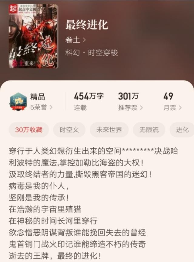 所以,说这本小说一书封神并不为过。而且,卷土我用这本小说走出了属于自己的风格,将无限流推向了新的高峰。读者将这本小说称之为数据无限流的鼻祖。