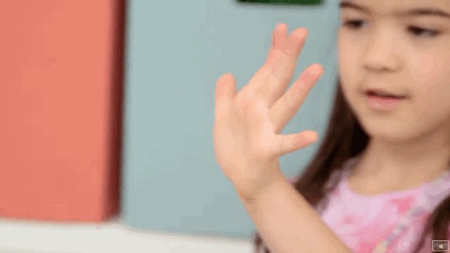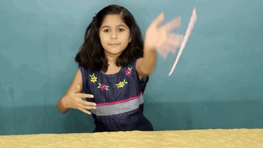 小棍其实以平行于拇指的角度藏在孩子虎口处,所以张开手掌、握住拳头就可以控制小棍的消失和出现啦。