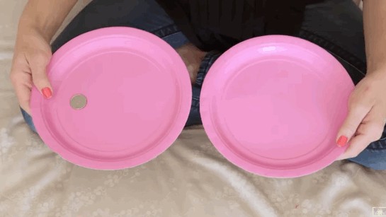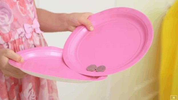 更简单的是一个纸盘的版本,这次会变出几枚硬币呢?