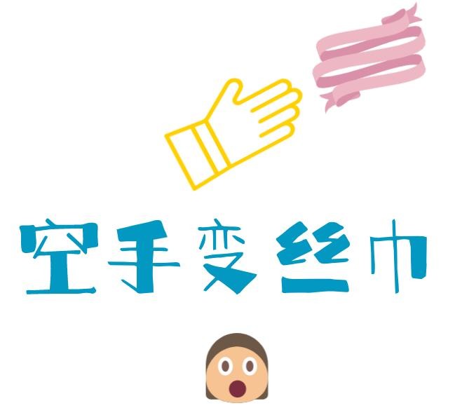 这个魔术也适合爸爸妈妈变给孩子看,同样是变丝巾,但比前一个魔术更惊艳。握住右手的大拇指,用力地掏掏掏掏,就能掏出一张彩色丝巾来!