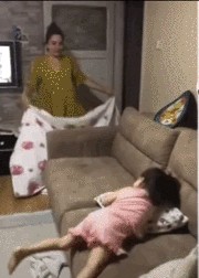 懂套路了之后,孩子也能大变活人,丢下毯子就跑或者开演国王的新衣,配合孩子傻傻的表演也很好玩不是吗。