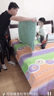 这可能是国内外社交媒体上普及度最高的魔术了,你只需要准备一张足够长的毯子或布,藏在一扇有“逃跑空间”的门后面,把毯子抬起放下,抬起放下,开跑……人消失啦。