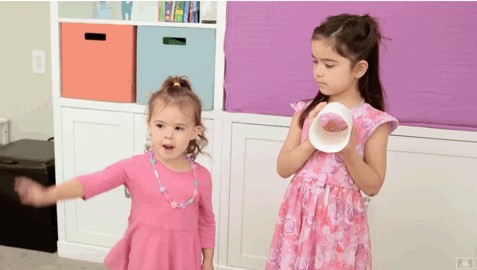 神奇的魔法棒一晃,两位小魔法师就能从空纸卷里抽出彩带!