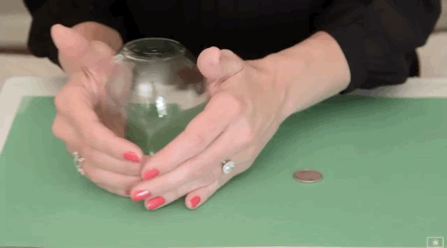 这是个超简单的近景魔术,透明的玻璃杯居然能让一枚硬币瞬间隐身,拿开杯子硬币又出现了!这个杯子是有魔力吗?硬币和背景纸完全没动手脚哦,把硬币罩住的其实是玻璃杯口的卡纸。