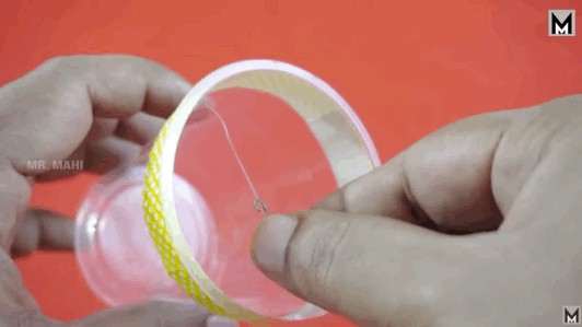 我们需要先把一根线固定在透明纸杯的内部,用两个回形针把另一根线连接可乐罐和纸杯,接下来就可以“腾空”倒可乐啦,可以选择一条白线,在白墙处表演,效果会更逼真。